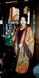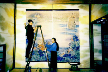Shortly after arriving in Japan, I was able to secure a position with Kunio Ekiguchi as his assitant. He is best known in this country for his books on Japanese wrapping techniques, published in English through Kodansha, International. He, in turn, introduced me to the teachers I needed in a variety of disciplines centered upon traditional doll making techniques. Matsuyou Hayashi, my bingata teacher, was one such person.