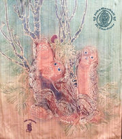 Matsuyou Hayashi had entered a pivotal point in her life when I arrived on her doorstep. She dismissed all of her apprentices just prior to taking me on as an apprentice. For the next several years she concentrated all of her energies on sharing her knowledge of bingata dyeing with me. Through her kindness and careful instruction, I became truly fascinated with this ancient art form. She died five years into my studies, and it was at that point that I returned to the States.
