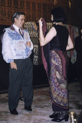 My work is collected internationally. I’ve been commissioned to dye traditional kimono in Japan and have also produced pieces for stockbrokers, professors, art collectors, as well as many international figures including European royalty. I’ve traveled extensively to share my work, showing to my private clients throughout the US and Japan. I’ve presented exhibitions of my art-to-wear internationally, with solo shows in Japan sponsored by the US State Department, Kodansha, and the Western Mafia of Japan.