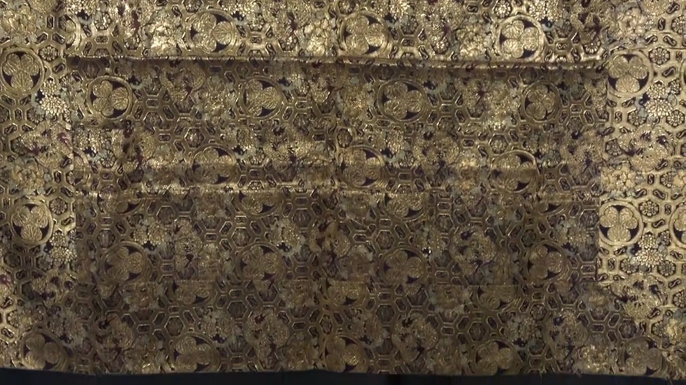 Futonji is the outer shell of a futon quilt, without the batting. This piece is the entire shell, front and back, with an open seam at the side from which the batting was removed.